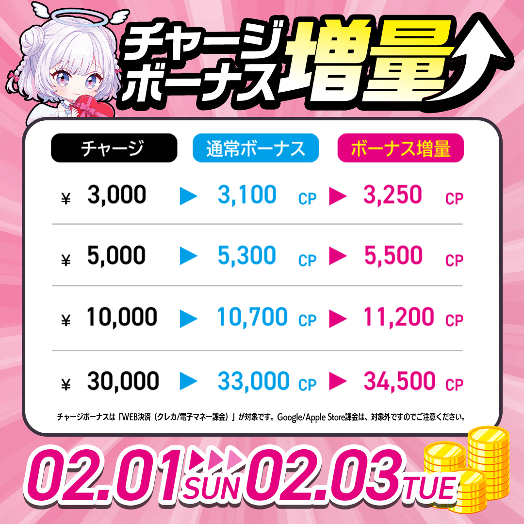 2月「チャージボーナス増量」イベント開催!