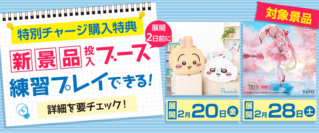 特別チャージパック購入で新景品投入ブースを100回練習できる!