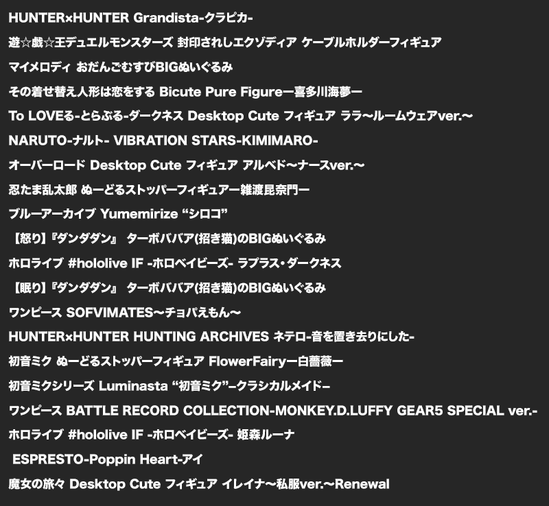 <景品ラインナップ>