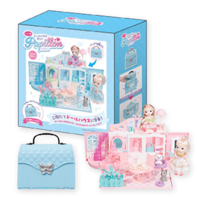 【ブルー】バッグ型ドールハウスセット パピヨン
