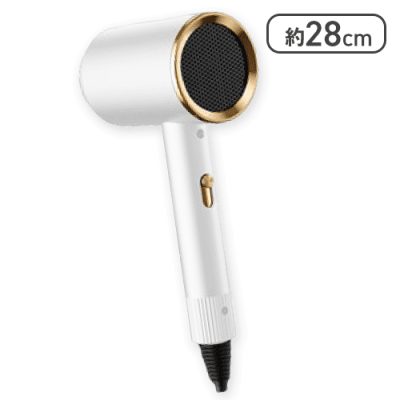 潤いを与えるマイナスイオンで痛んだ髪をメンテナンス ワンタッチで3段階の風量調節が可能! サイズ:約28cm