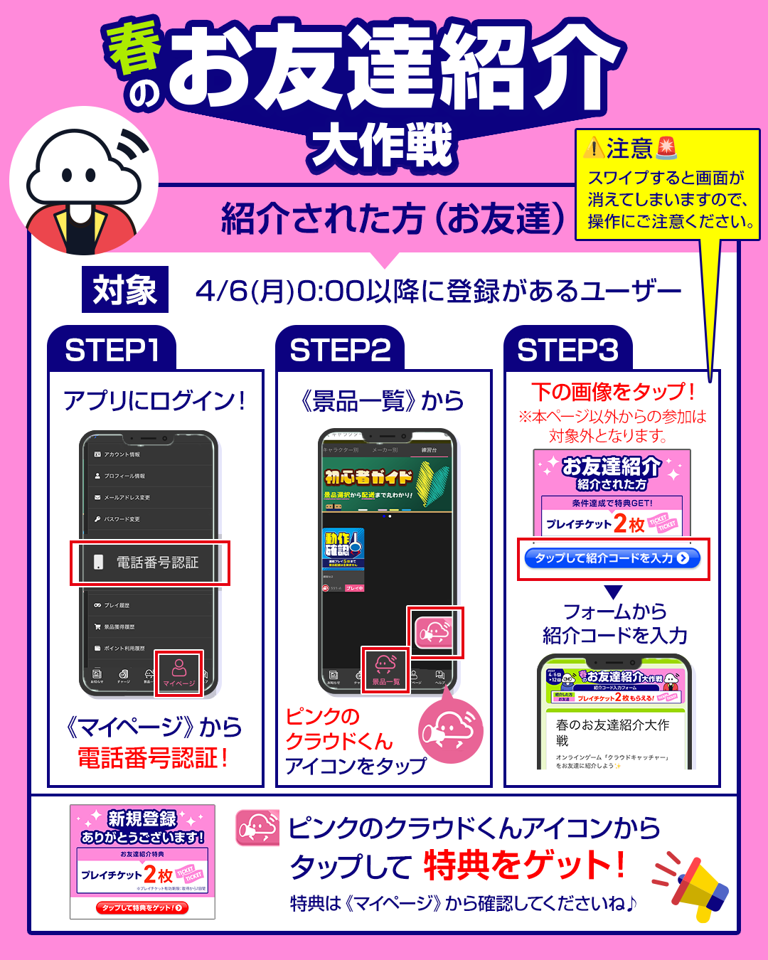 紹介可能なユーザー:4月5日(日)23:59までに登録があるユーザー